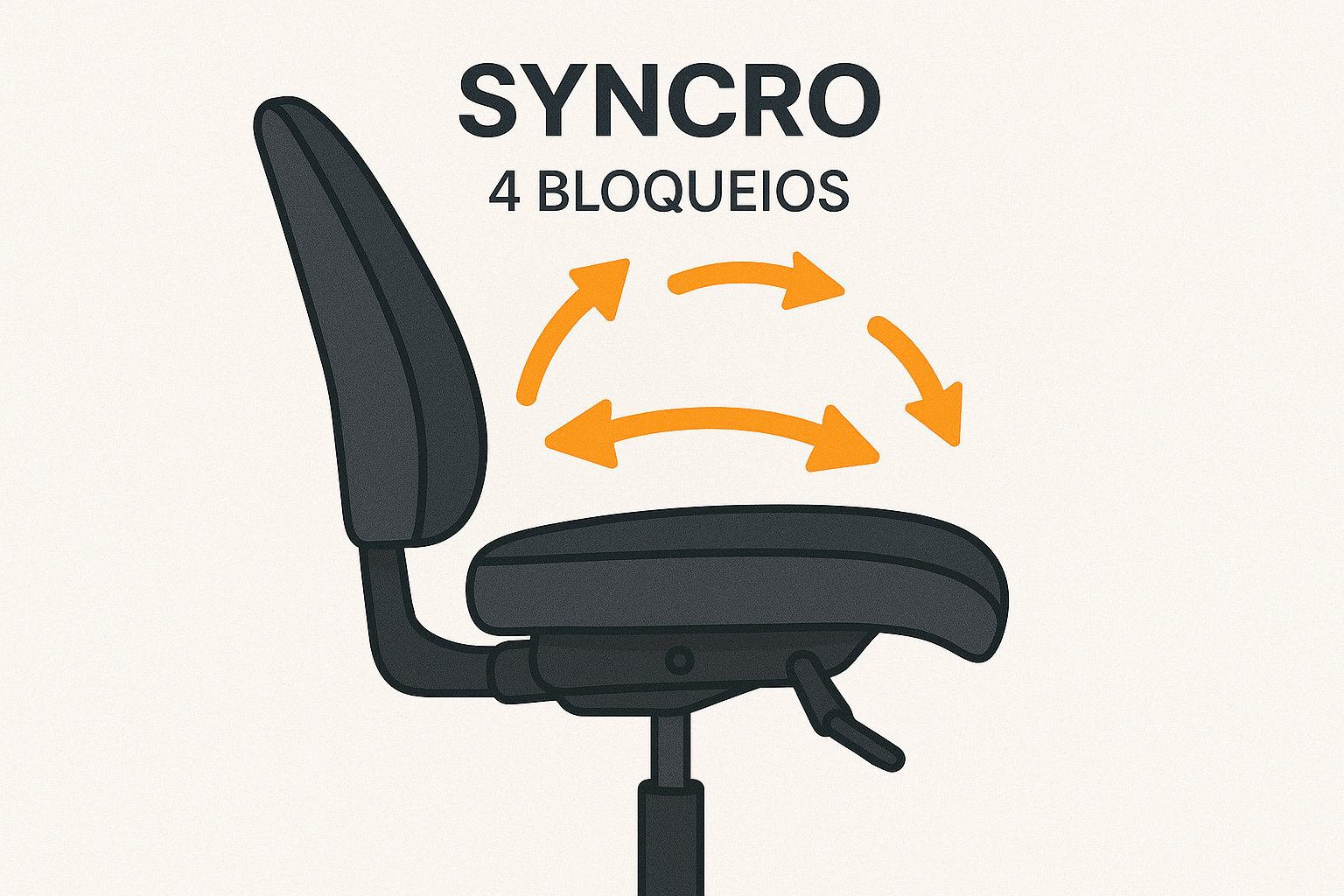 - Syncron 4 bloqueios: permite travamento em quatro diferentes ângulos, garantindo maior personalização da postura. É indicado para uso intensivo (8h ou mais por dia), ideal para posições de liderança ou trabalho contínuo em frente ao computador.